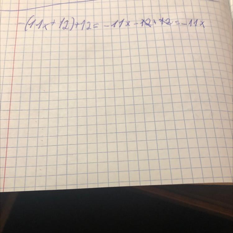 -(11х + 12) + 12 = -11х - 12 + 12 = -11х + (12 - 12) = -11х + 0 = -11х