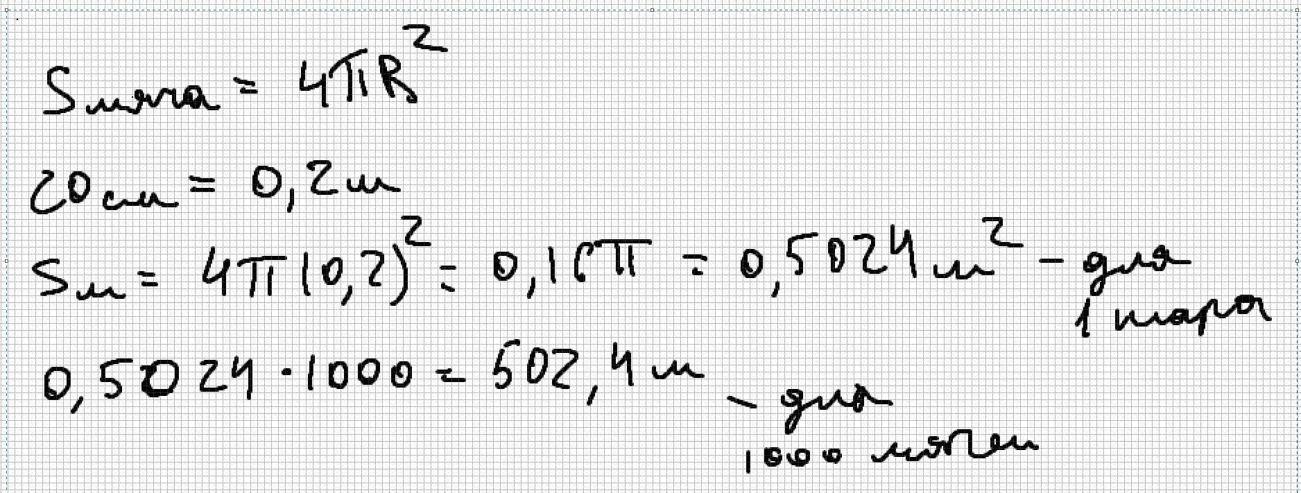 На швейной фабрике изготовляют кожаные мячи радиусом 20 см. Сколько квадратных метров кожи необходимо будет фабрике чтобы изготовить 1000 мячей?