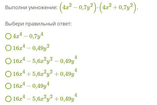 (a² - b²) = (4x²)² - (0,7y²)² = 16x⁴ - 0,49y⁴