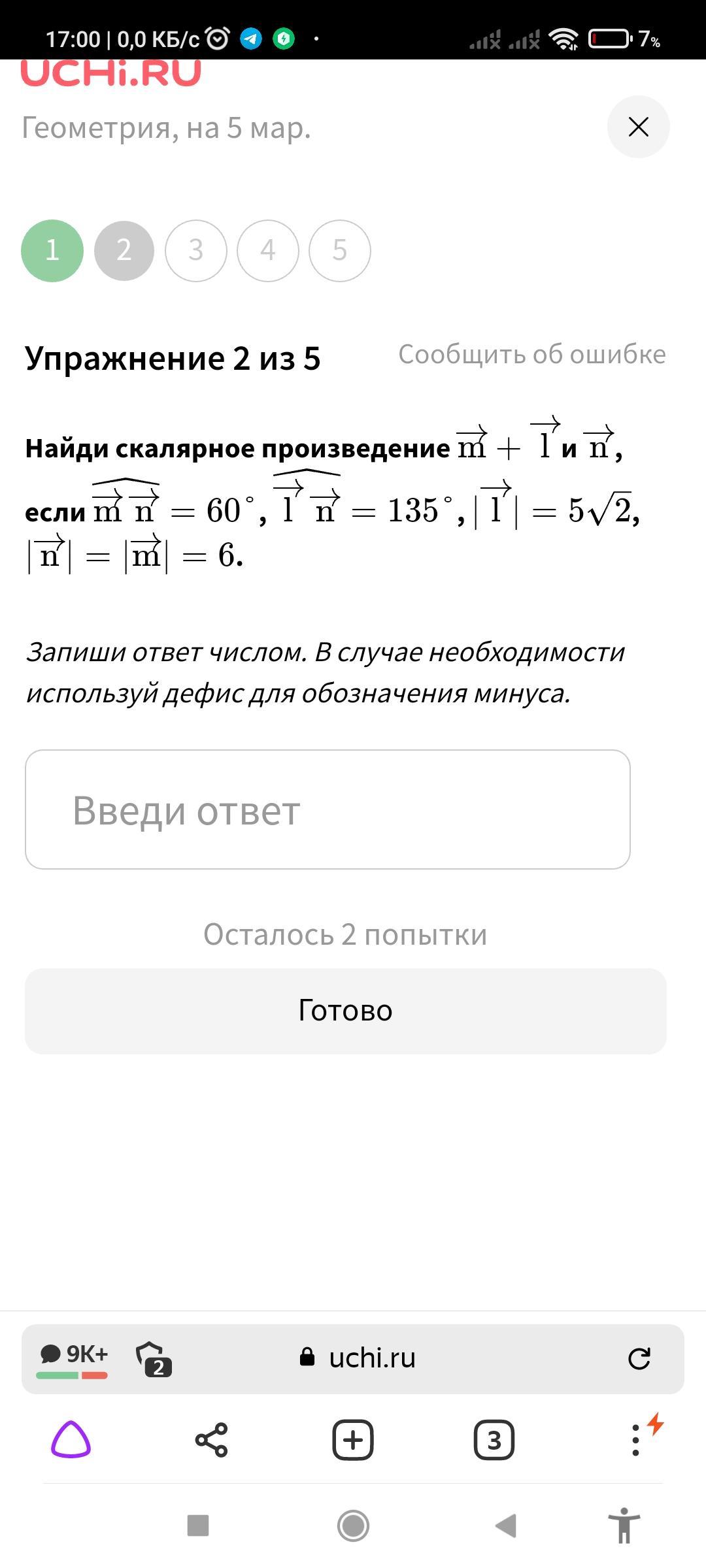 + | L |*| n |*cos135° = 6*6* 1/2 - 5√2 *6* cos45° = 18 - 30√2 *√2/2 = - 12 ;