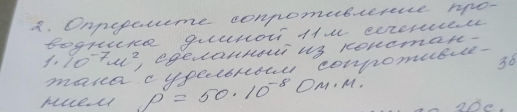 определите сопротивление проводника длиной 11м сечением 1×10^-7м^2, сделанный из константана с удельным сопротивлением р=50×10^-8 Ом×м