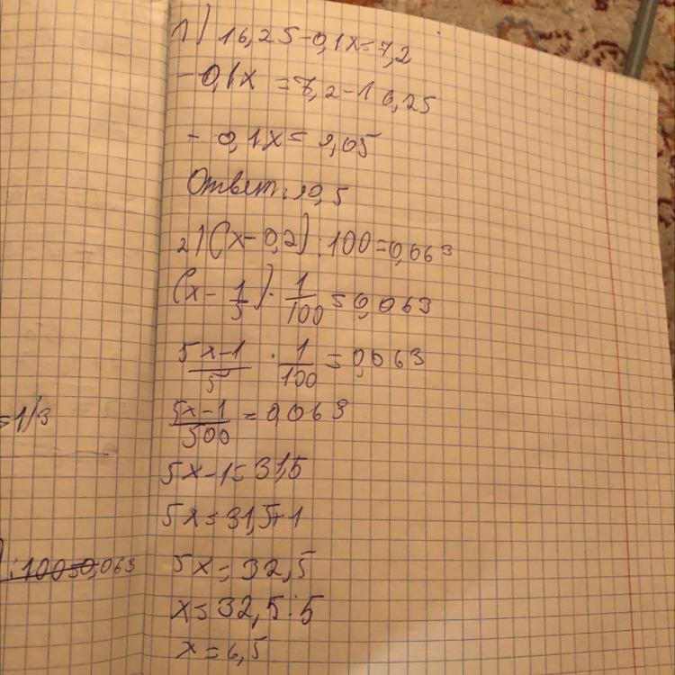 б) (x – 0,2) : 100 = 0,063 (15 баллов)