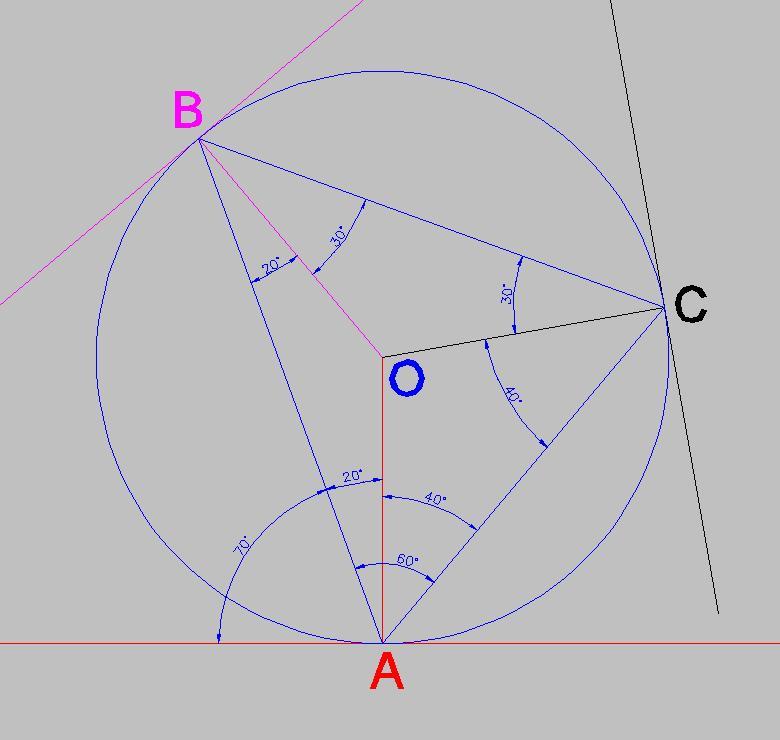 2. Треугольник АОВ равнобедренный, углы при основании 20°, угол при вершине