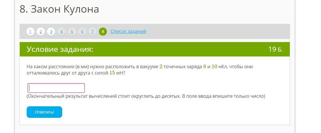 r^2=(kq1q2)/F=9*10^9*8*10^-9*10*10^-9/0.015=48*10^-6 м=0,000048 м