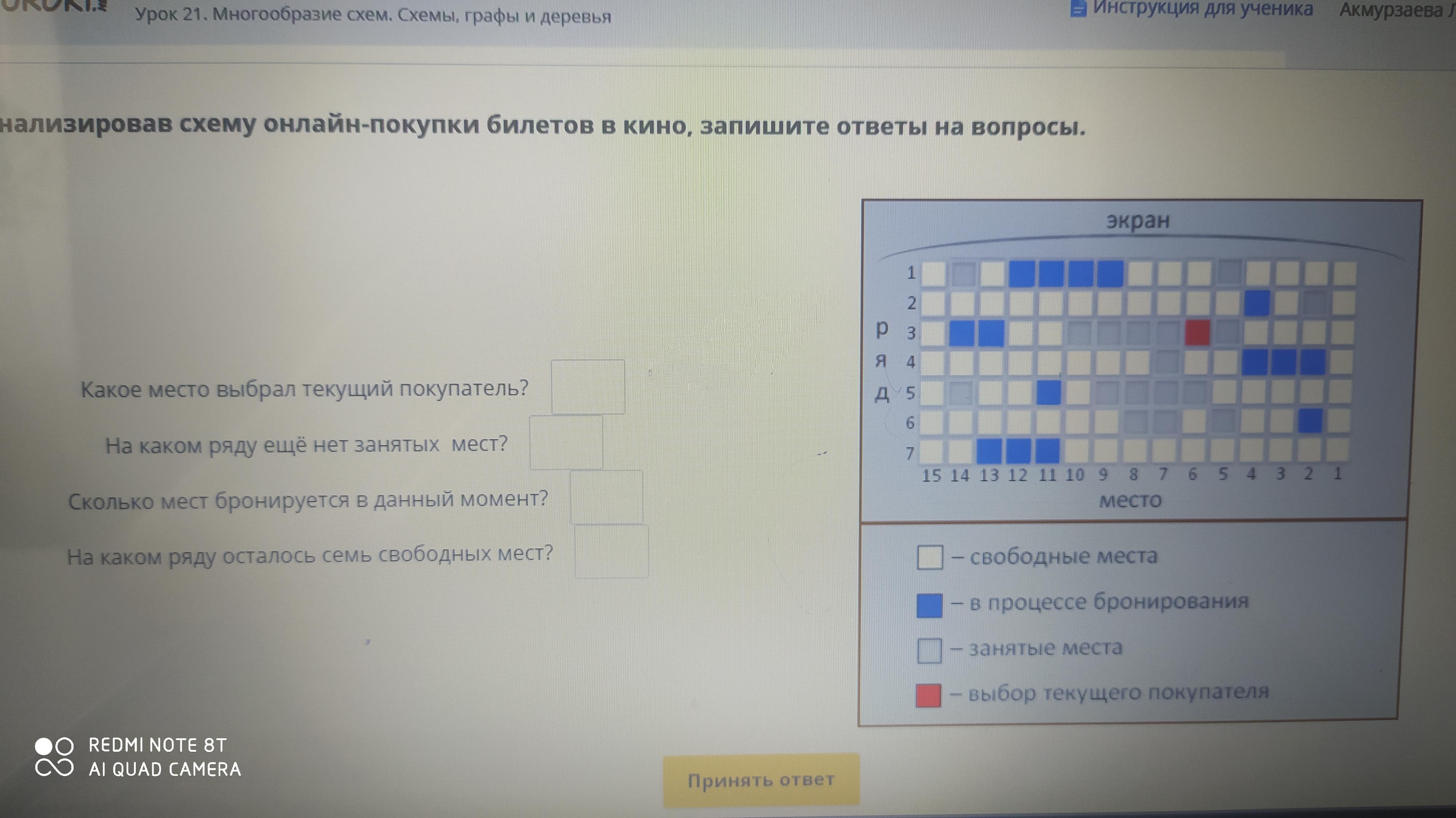 Проанализировав схему онлайн- покупки билетов в кино, запишите ответы на вопросы.Дам 20 баллов.
