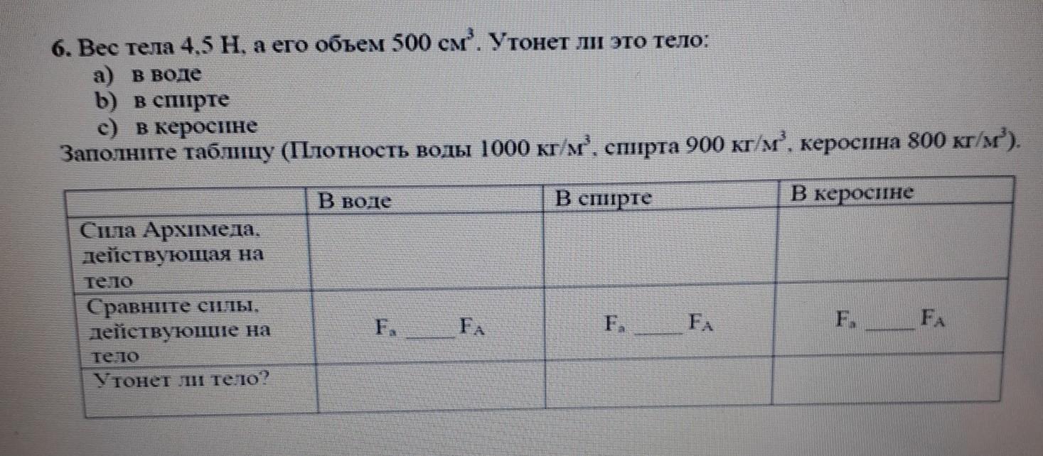 Сила Архимеда 5 4,5 4
