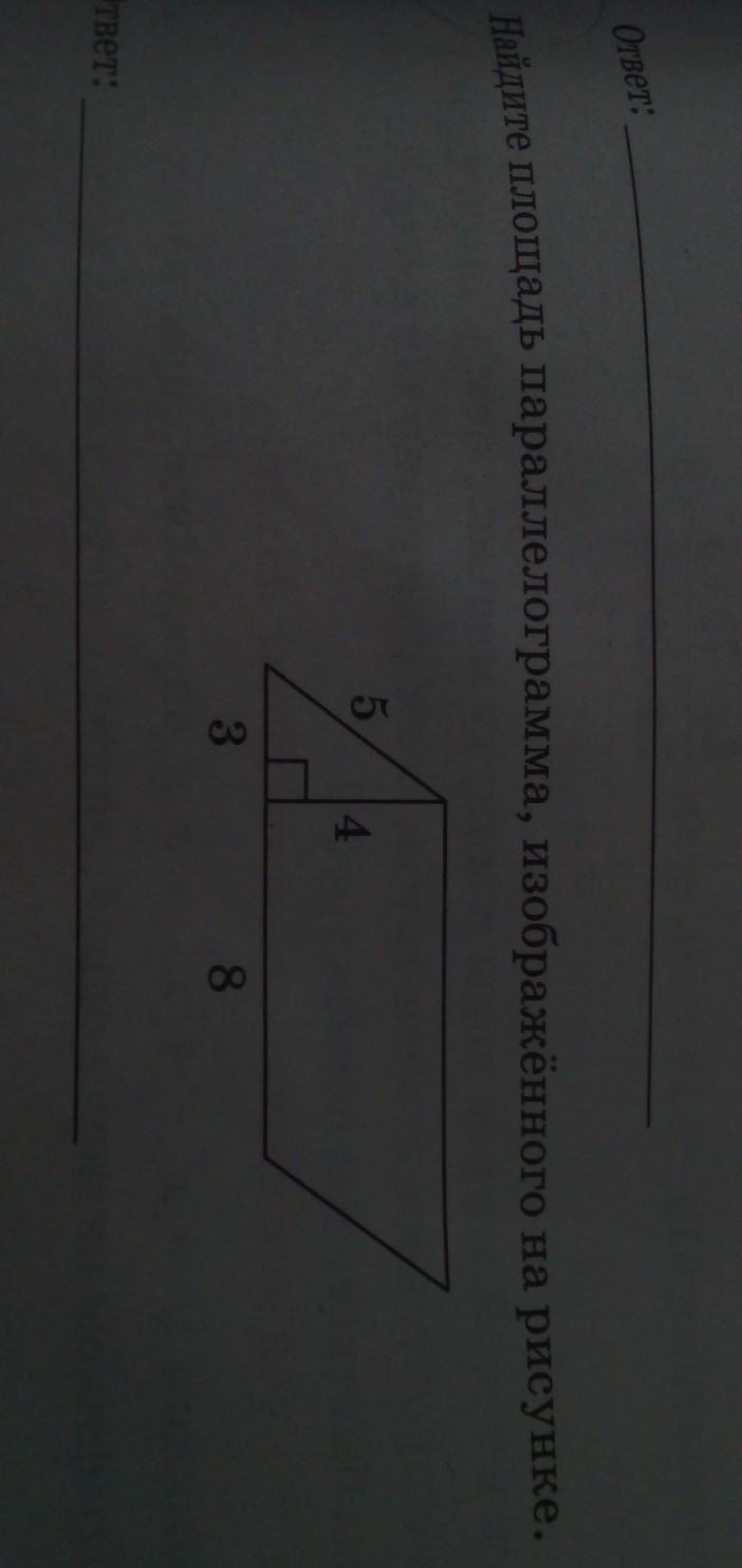 ответ двадцать так как площадь параллелограмма находится по формуле S=ah=4*5=20