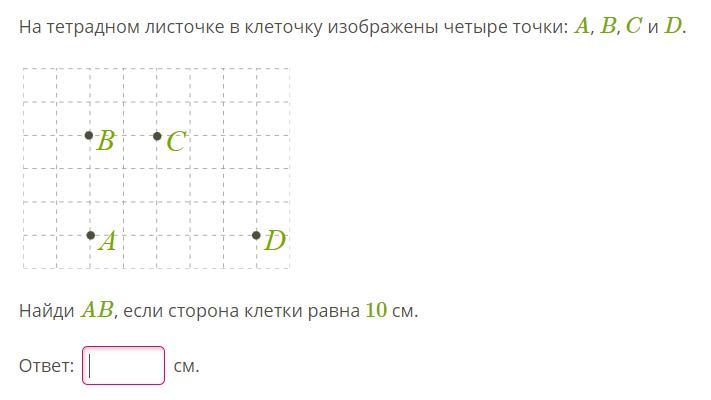 На тетрадном листочке в клеточку изображены четыре точки: A,B,C,D