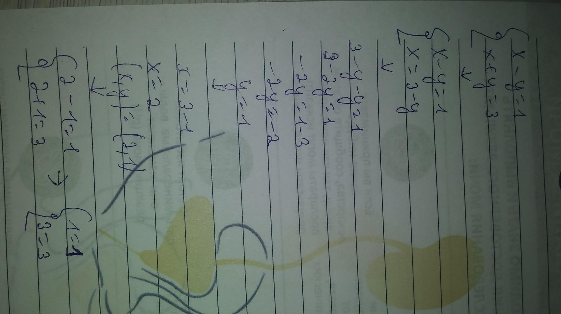 x-y=1 ,x= 3-y --- 3-y-y=1 (далее на фото)