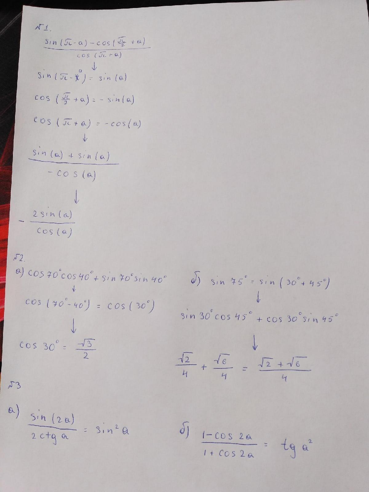 2.a)cos70°cos40°+sin70°sin40°=cos(70°-40°)=cos30°=