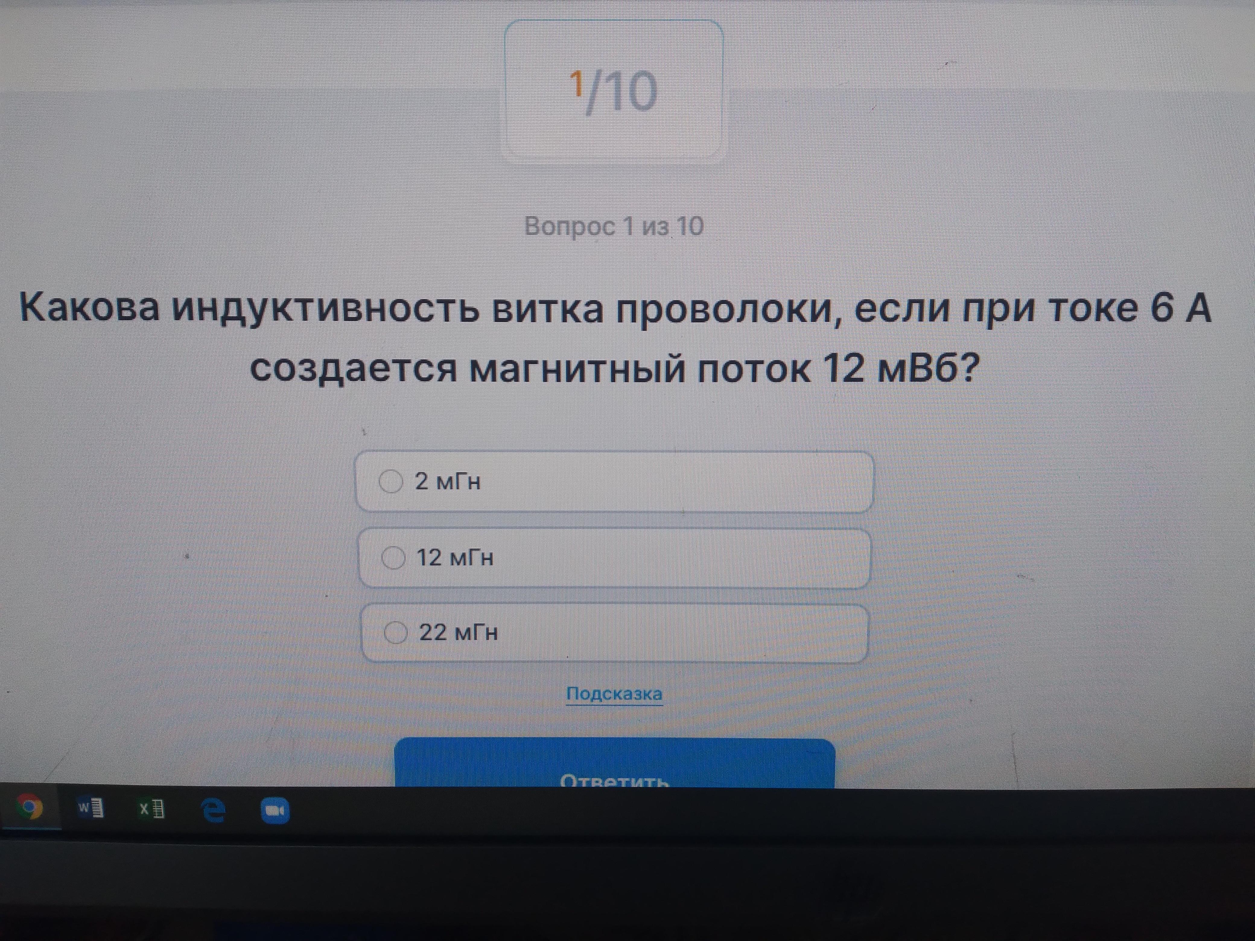 Какова индуктивность витка проволоки, если при токе 6 А создается магнитный поток 12 мВб?