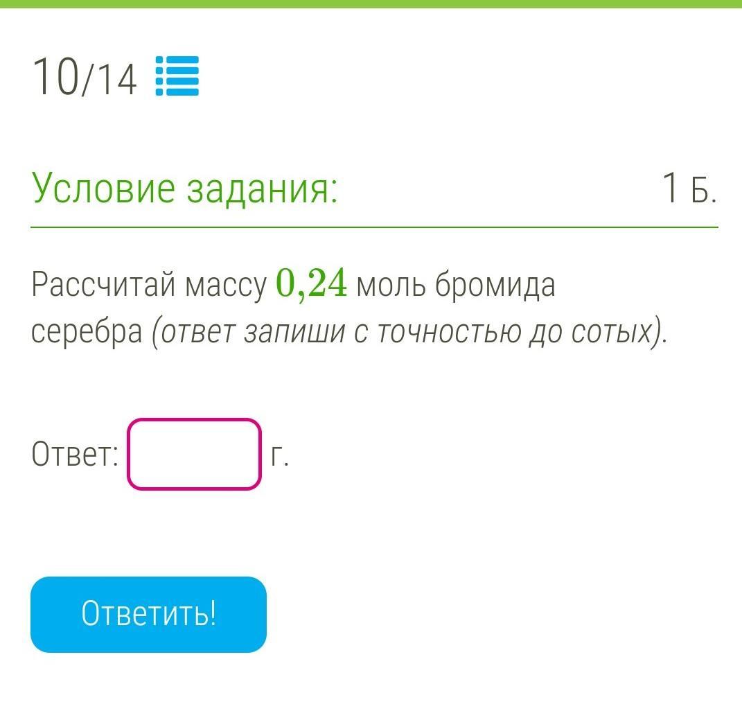 M(AgBr)= 108 + 80 = 188 гр/моль