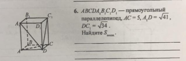 AC = 5 см, A1D = √41 см, DC1 = √34 см.