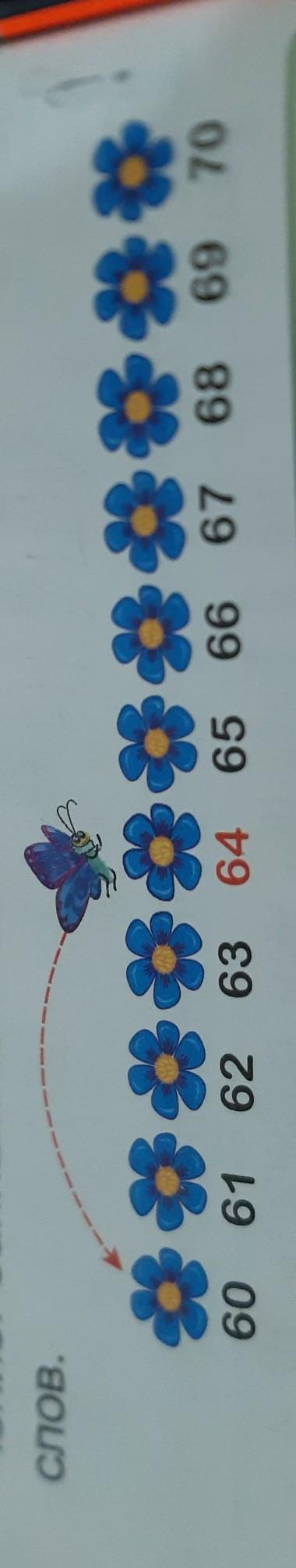 бабочка сидела на 64 цветочке на нем закончился нектар и она перелетела на 60 цветочек через сколько цветочков она перелетела ?