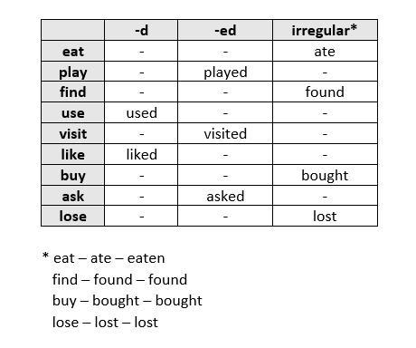 1) Если правильный глагол в инфинитиве имеет окончание -е или -ее, в прошедшем времени к нему добавляется окончание -d.
