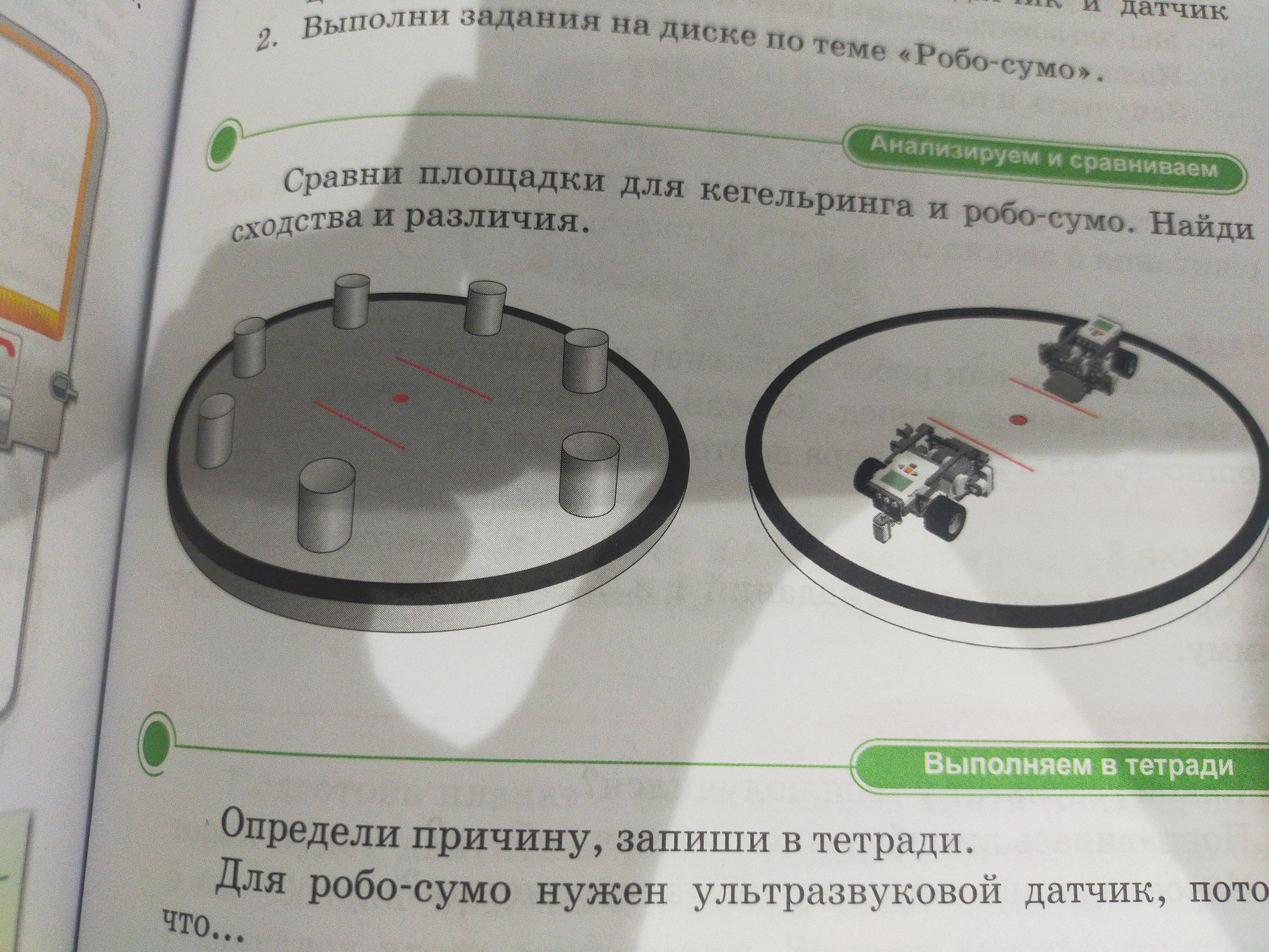 Сравни площадки для кегельринга и робо-сумо. Найди сходства и различия.