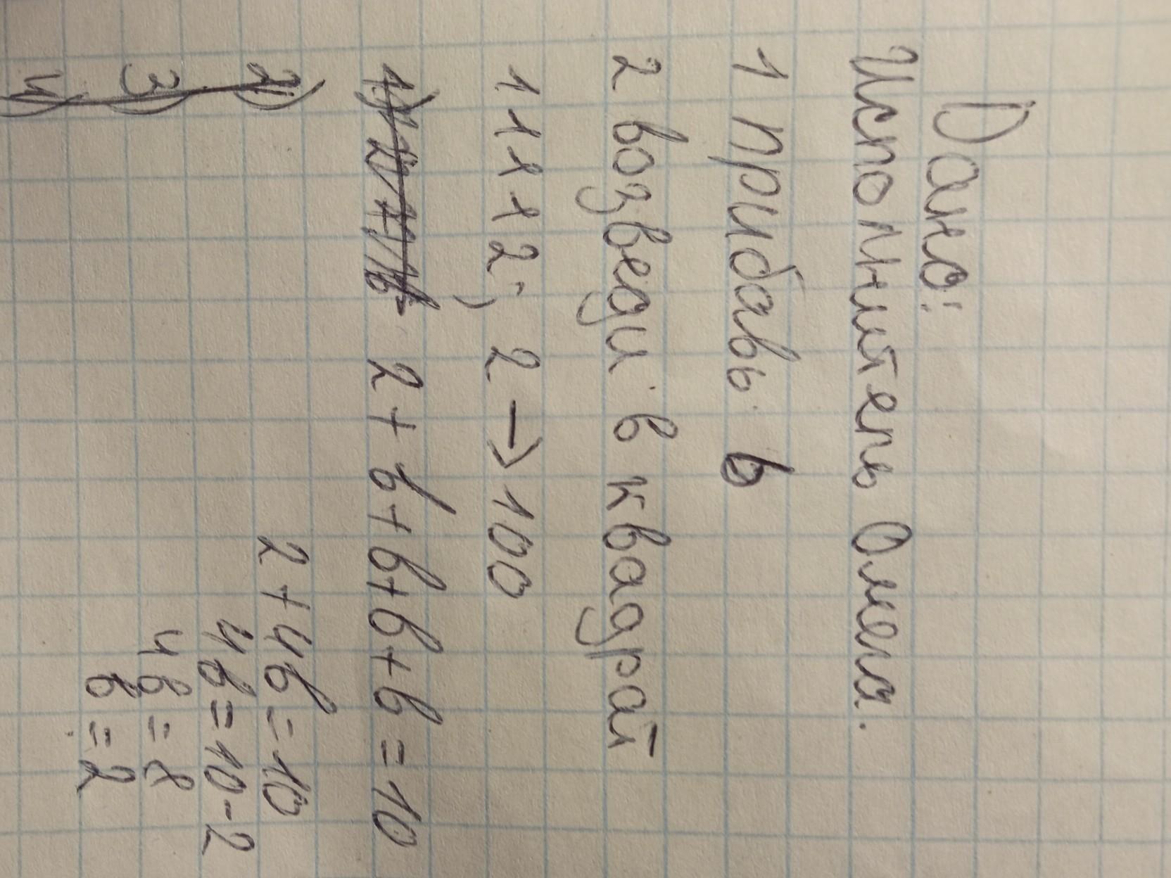 Выполняя первую из них, Омега увеличивает число на экране на b, а выполняя вторую, заменяет число на экране на то же число, возведенное в квадрат. Программа для исполнителя Омега - это последовательность номеров команд. Известно, что программа 1 1 1 1 2 переводит число 2 в число 100. Определите значение b.