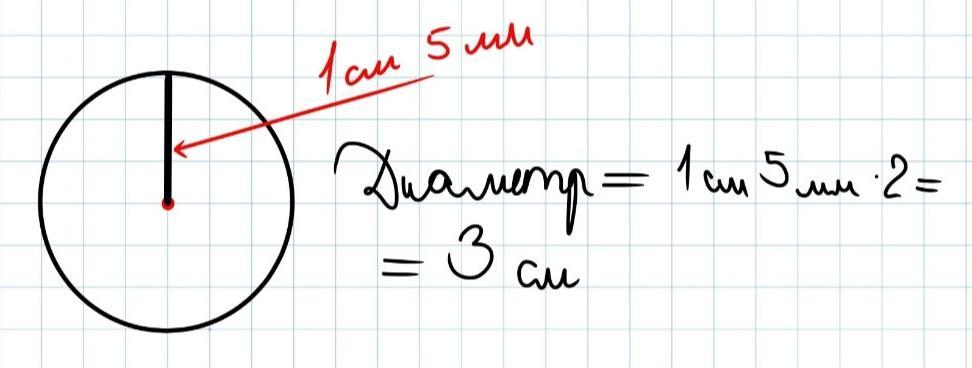 Начерти окружность радиусом 1 см 5 мм и найди его диаметр?