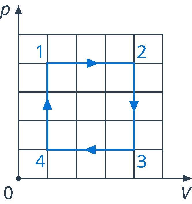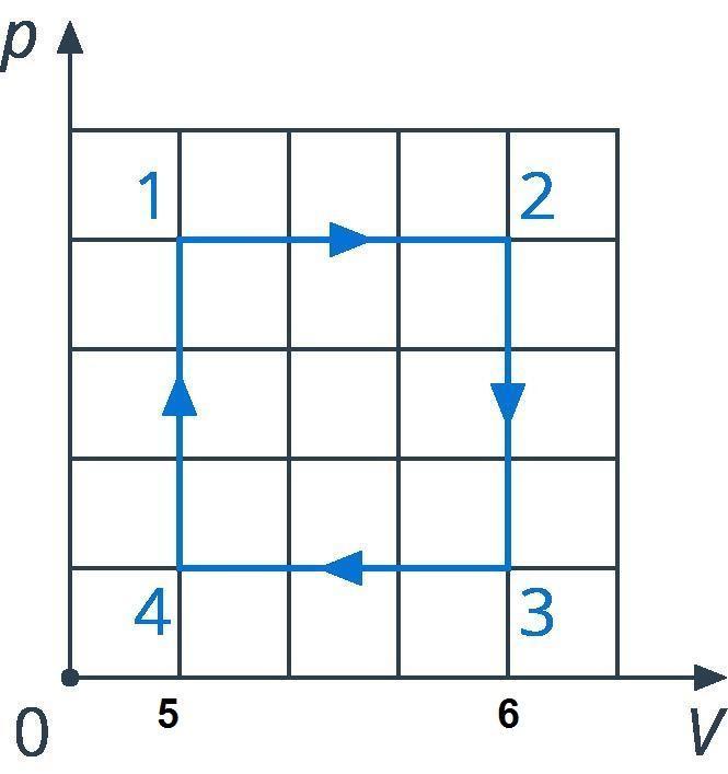 График представляет собой циклический процесс идеального газа. На каком участке газ теряет теплоту? Определите КПД цикла.