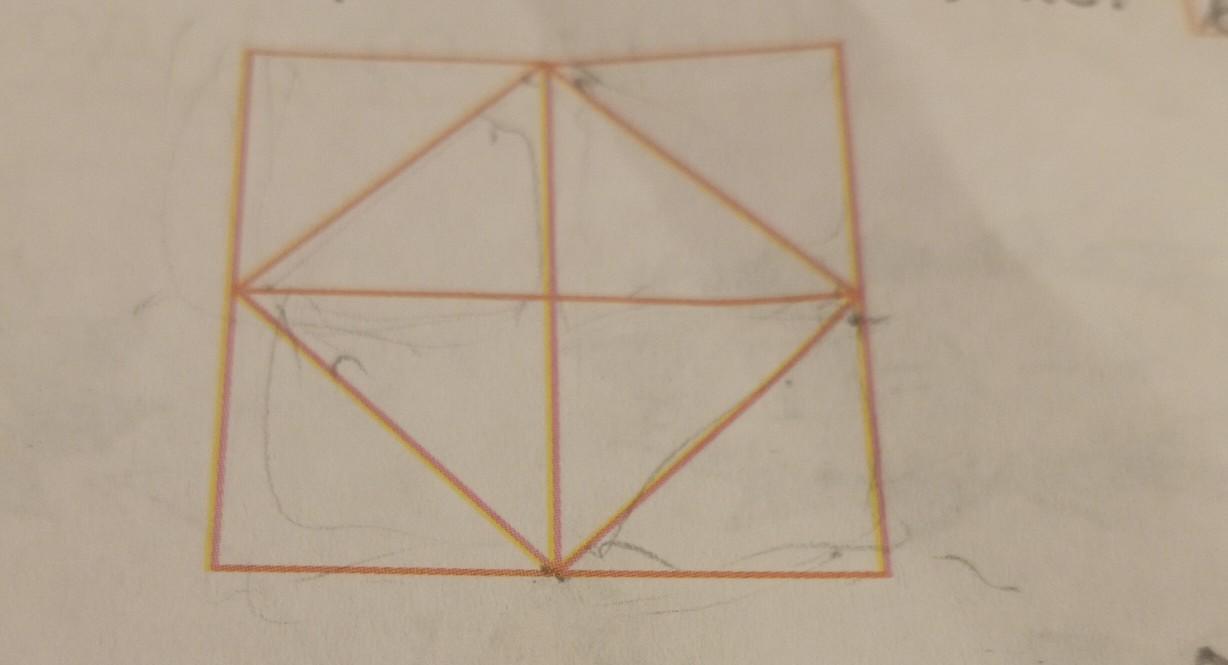 Всего 6 квадратов: 1 -самый большой; затем - линии, проходящие через середины сторон большого квадрата делят его на 4 маленьких квадрата; и еще 1 квадрат - его вершинами лежат на серединах сторон большого квадрата.