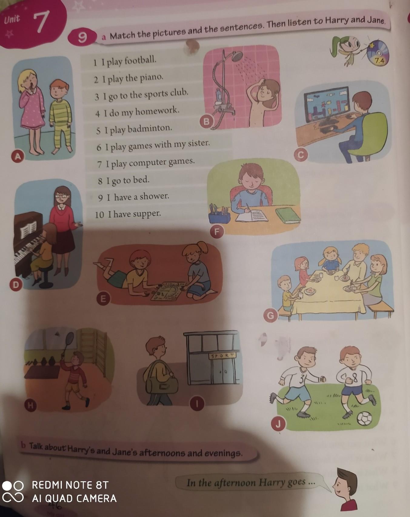 A, Match the pictures and the sentences. Then listen to Harry and Jane.