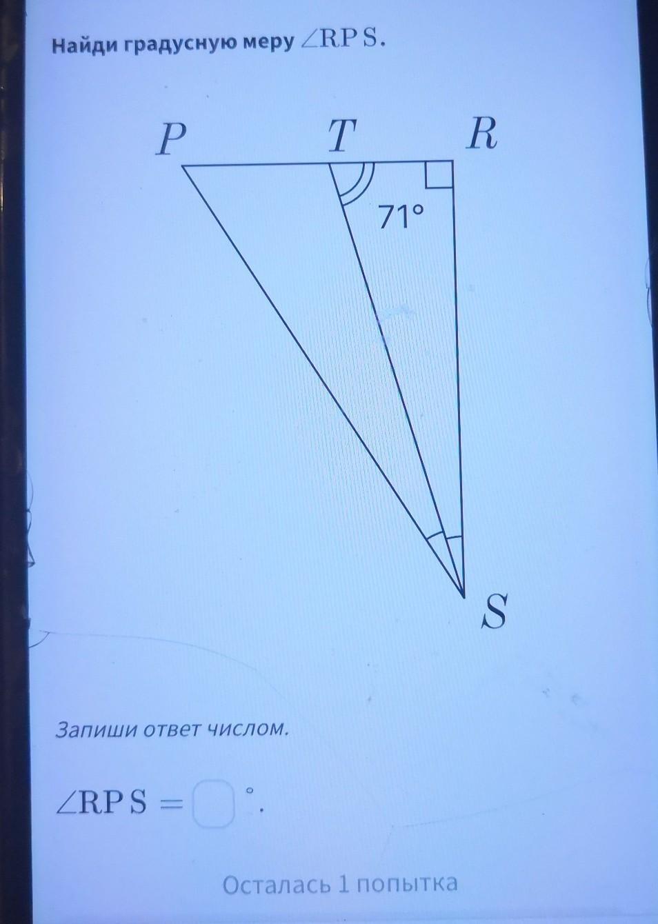 ∠TSR = 180 - ∠TRS - ∠RTS = 180 - 90 - 71 = 19°