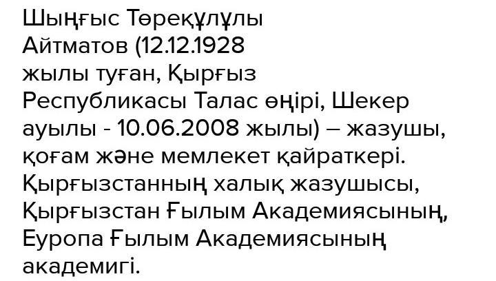 2. Шыңғыс Айтматовтың қандай шығармасымен таныстыңыздар?
