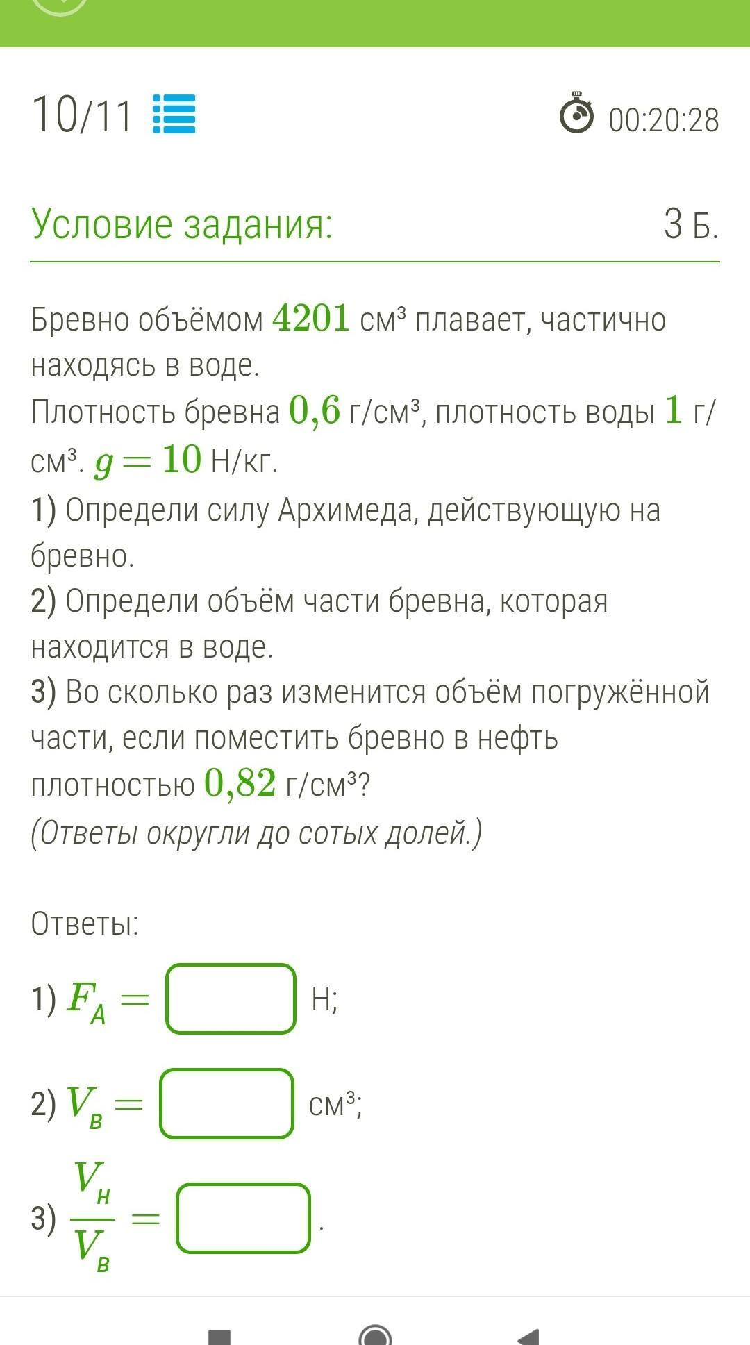 Объем погруженной части бревна при погружении в нефть по отношению к погружению в воде равен: