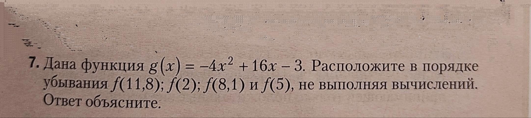 Дана функция g(x)=-4x²+16x-3. Расположите в порядке убывания f(11,8); f(2); f(8,1); f(5)