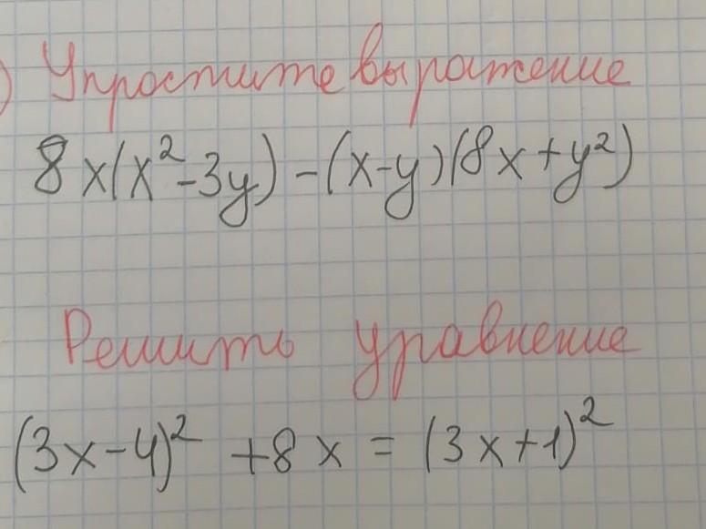 8x(x²-3y)-(x-y)(8x+y²)=8x³-24xy-8x²-xy²+8xy+y³