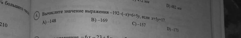 - упростим выражение: -192-(-х)+6+5у= -192+х+6+5у=х+5у-186;