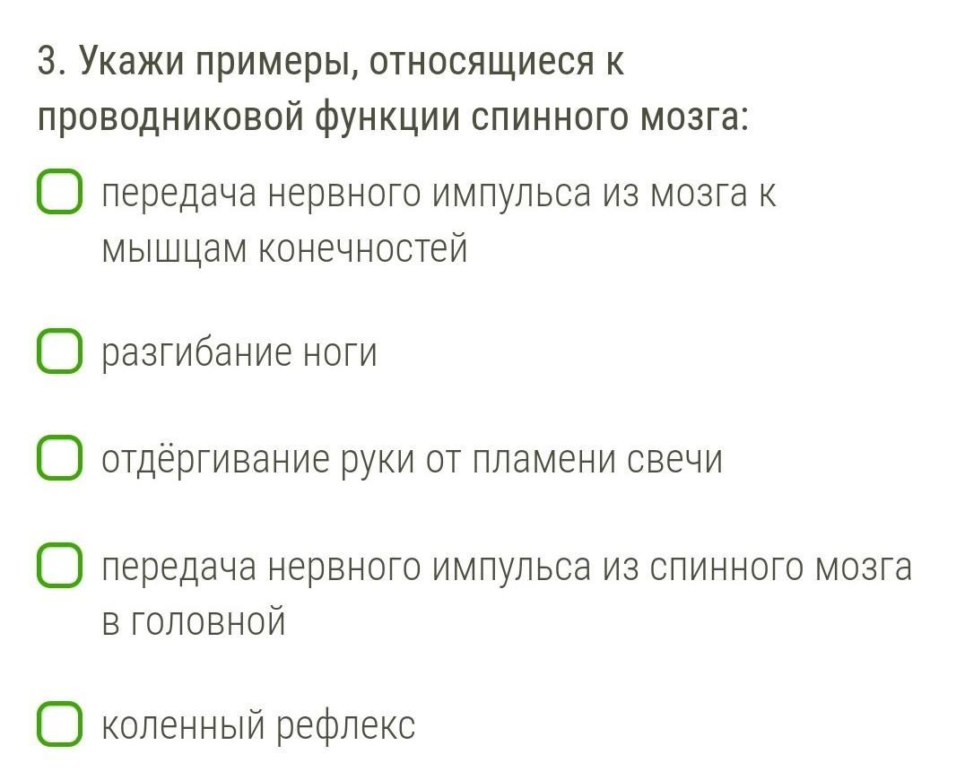извиняюсь, но Вы забыли про передачу нервного импульса от спинного мозга в головной.
