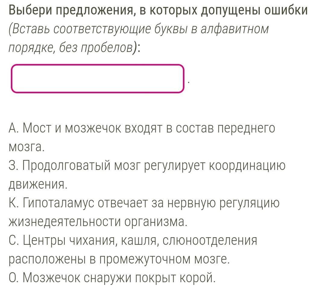 — правильный ответ — «Мост и мозжечок входят в состав заднего мозга».