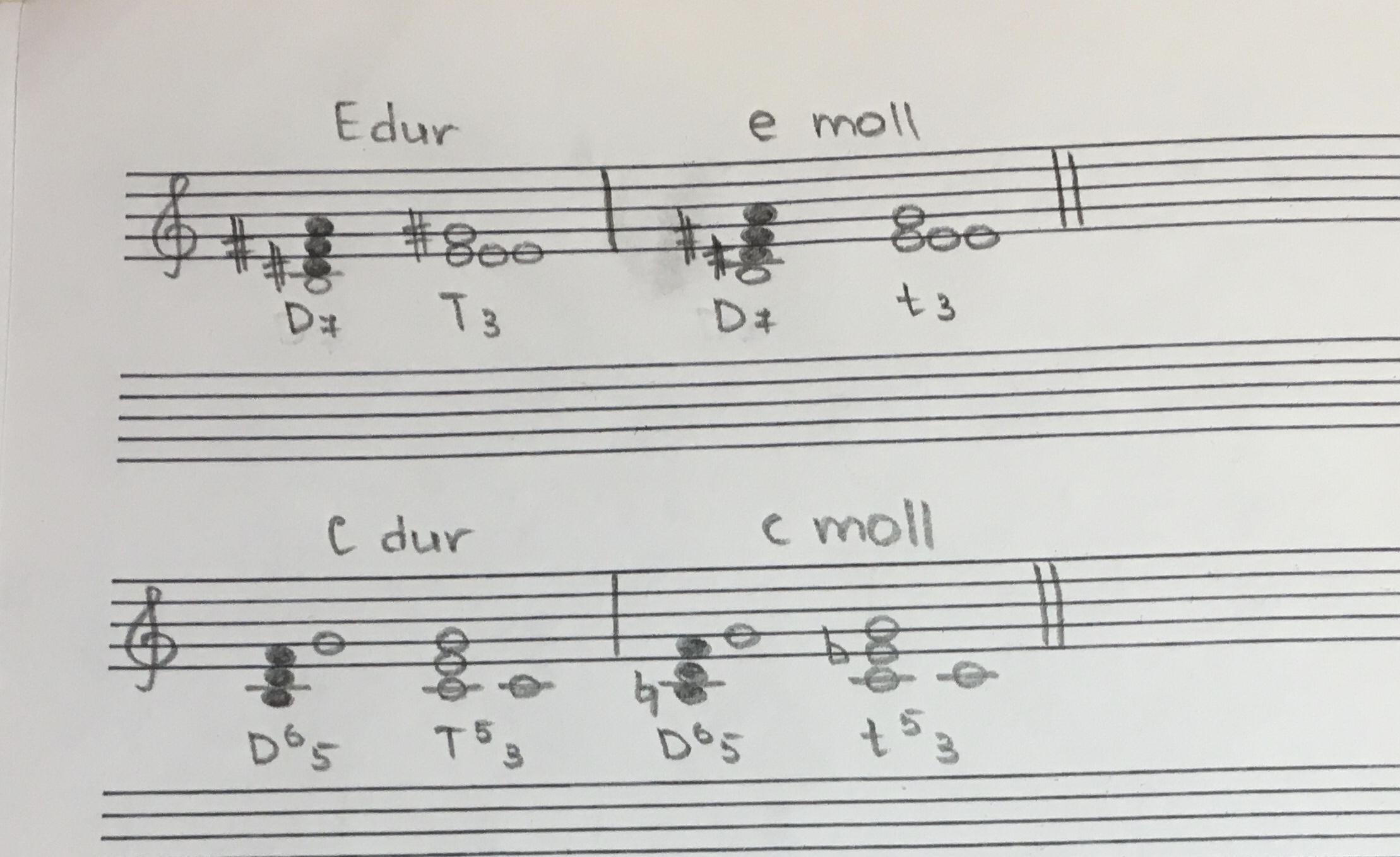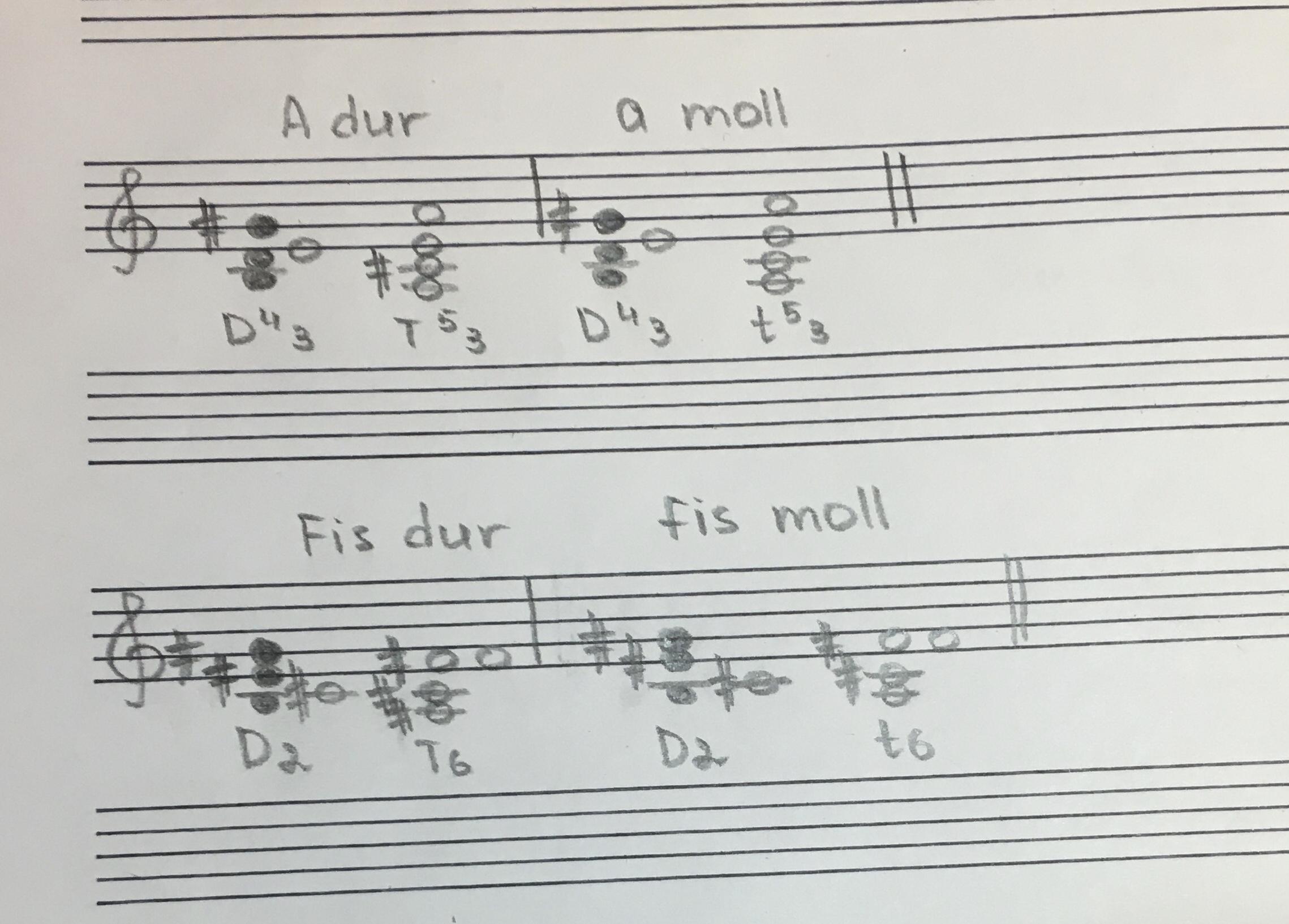 - Доминантовый терцквартаккорд (D⁴₃) строится на II ступени натурального мажора и гармонического минора. Состоит из малой терции, большой секунды и большой терции. Разрешается в развёрнутое тоническое трезвучие.