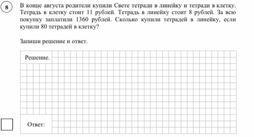 1) 80 × 11 = 880₽ (трата на тетради в клетку)