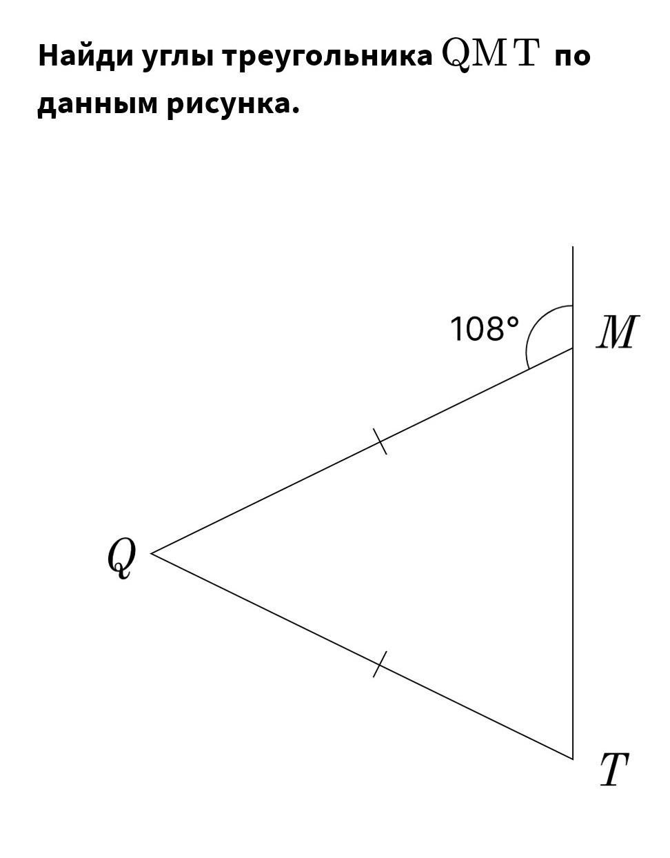угол QMT = 180° - 108° = 72° (по свойству развёрнутого угла )