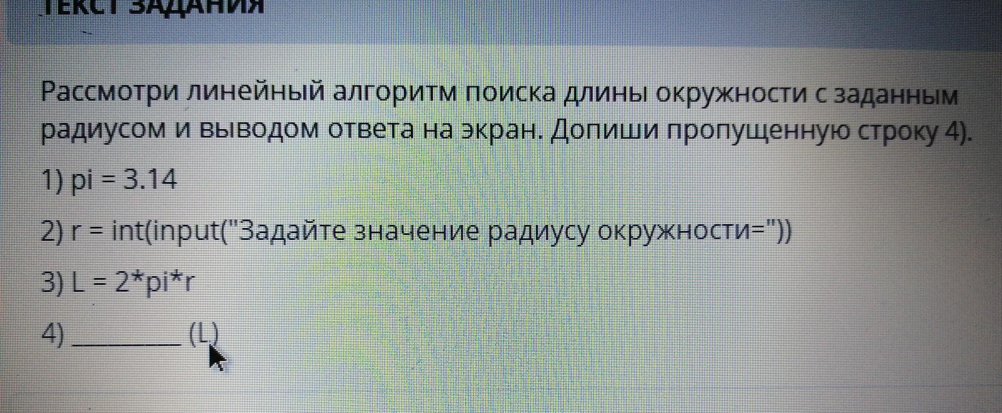 по идеи нужно вписать print, иначе зачем ещё там скобки стоят и вычисленная длина окружности