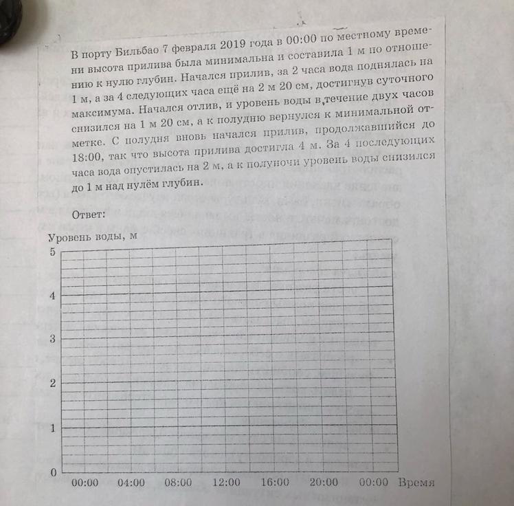 по приведённому описанию схематично постройте график уровня моря в порту Бальбао в течение суток с 00:00