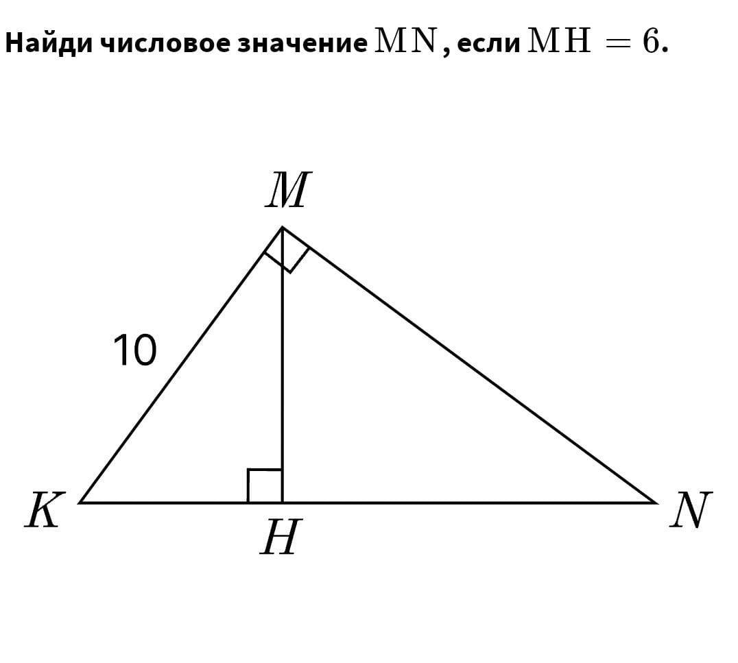 КН=√(КМ²-МН²)=√(100-36)=√64=8
