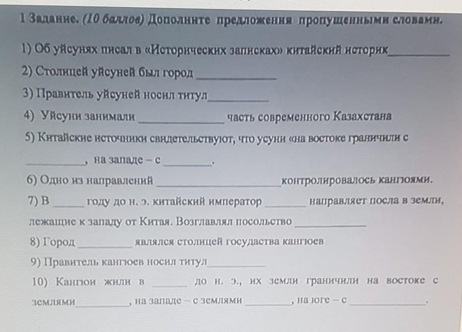 5) Китайские источники свидетельствуют что усуни на востоке граничит с Хунни, на западе с кангюями.