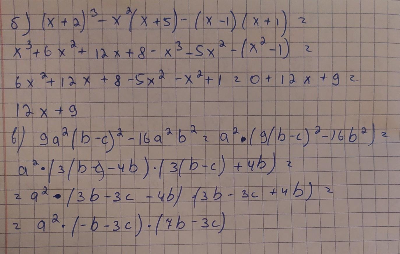 б) (х + 2)3 – х2(х + 5) – (х – 1)(х +1)