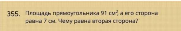 Из формулы площади прямоугольника S=a*b найдём сторону b, b=S:a=91:7=13