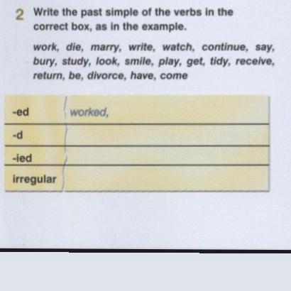 В этом задании надо просто поменять окончания, например: died, окончание было E , а мы его поменяли на ED , также и с другими.