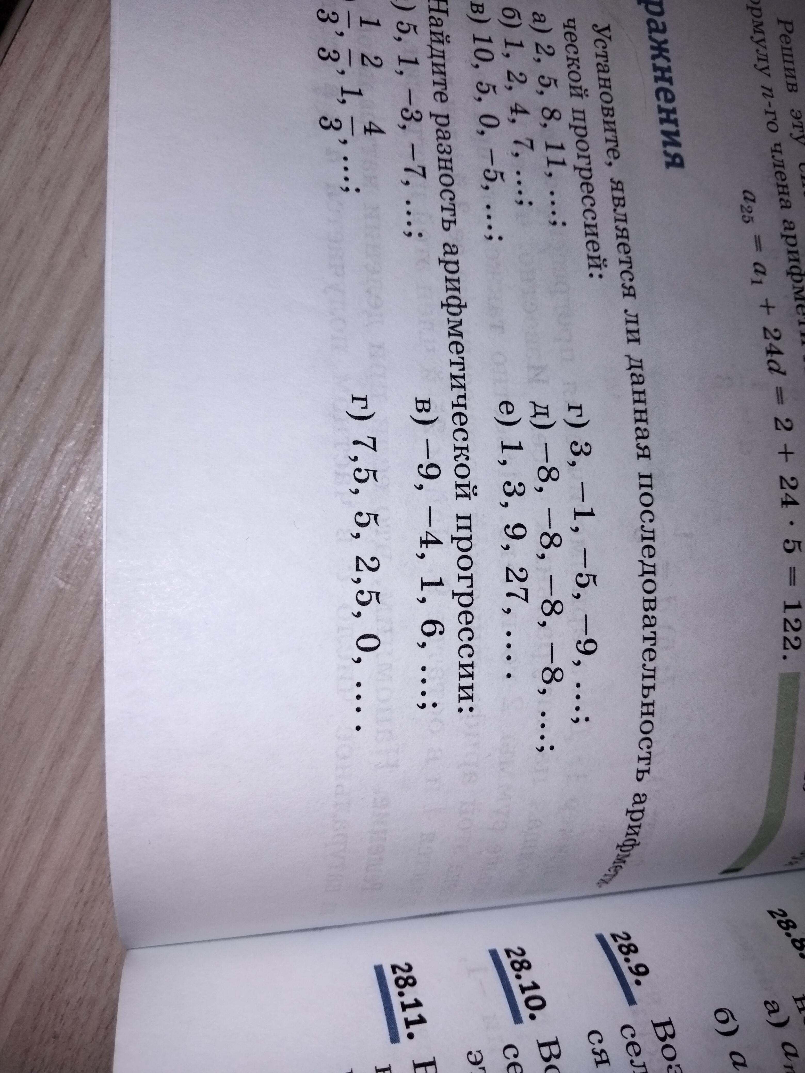 получили ,что след.член последовательности отличается от предыдущего на одно и тоже число d=-4,значит это арифметическая прогрессия.