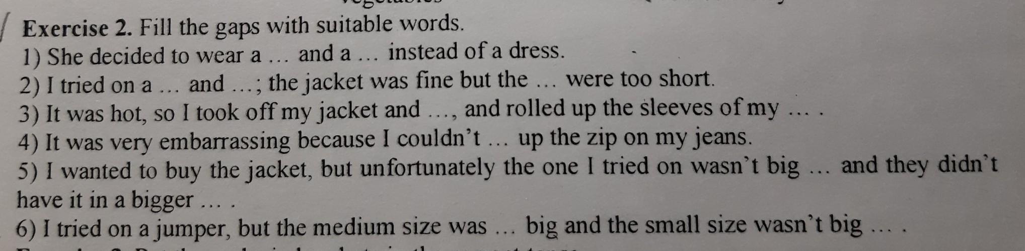 6) I tried on a jumper, but the medium size was too big and the small size wasn't big enough.