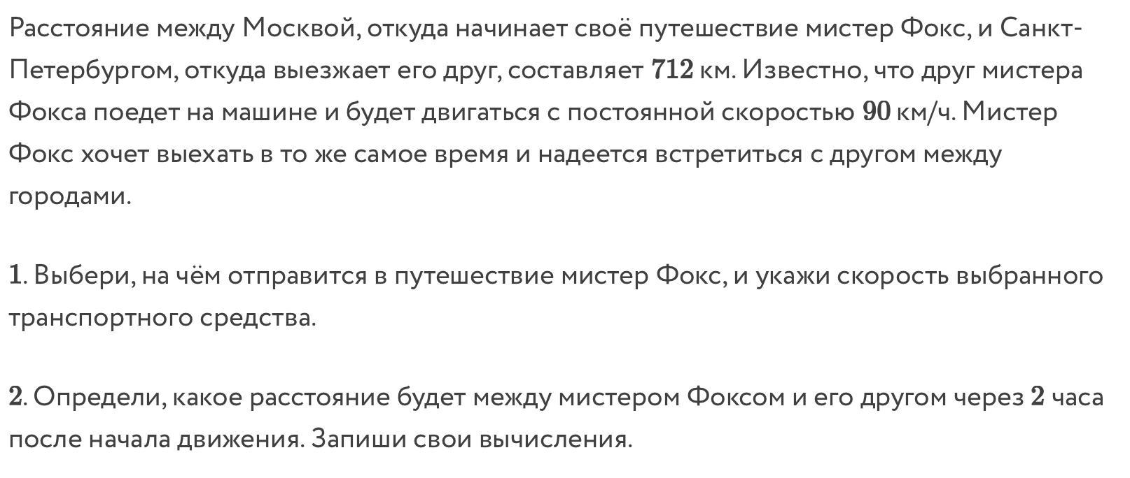 2) Так как друг мистера Фокса едет со скоростью 90 км/ч на протяжении 2-х часов, то от Санкт-Петербурга он отъедет на 90*2 = 180 км.