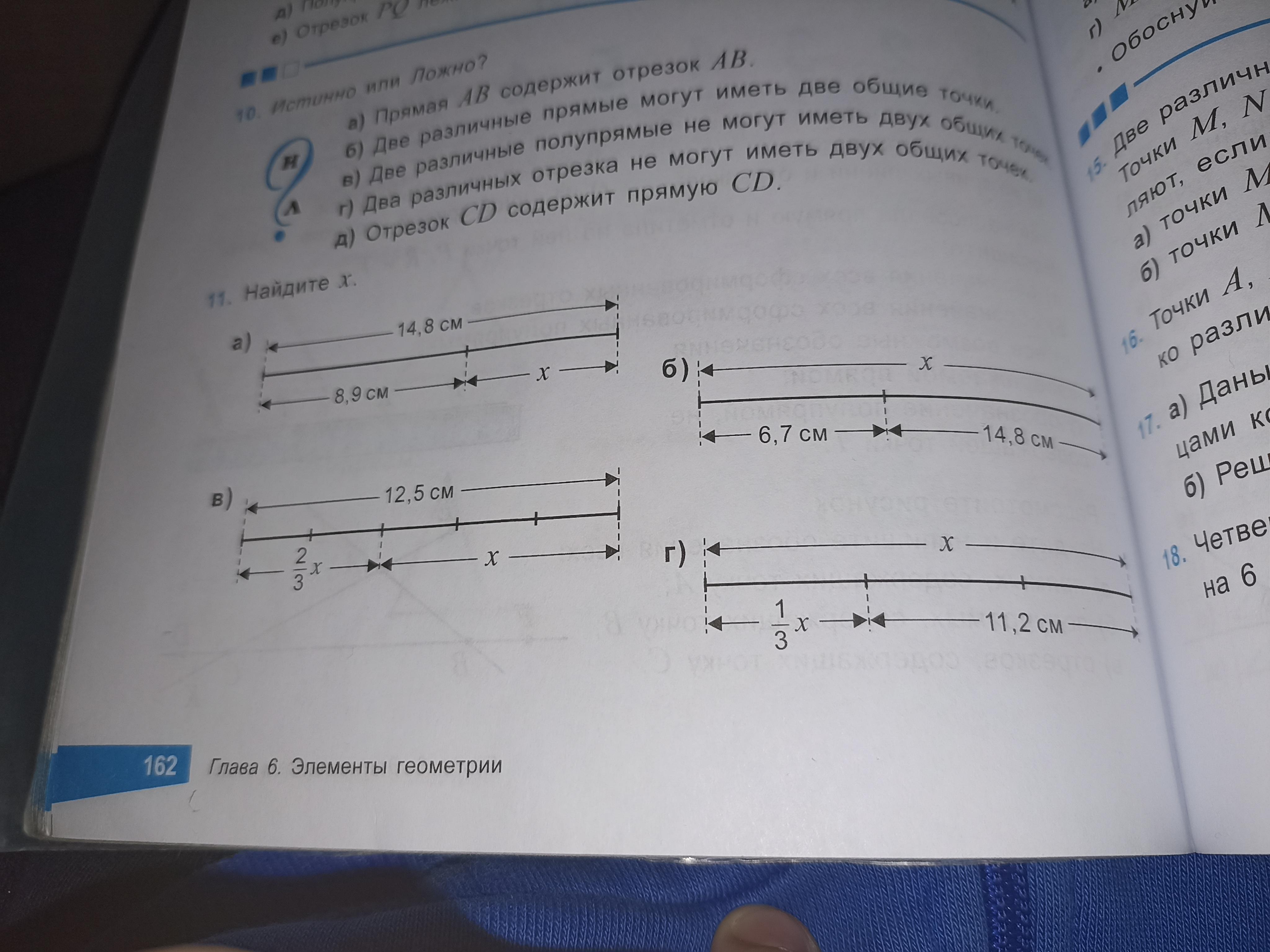 г) х - х/3 = 11,2; 2х/3=11,2; х=16,8 см