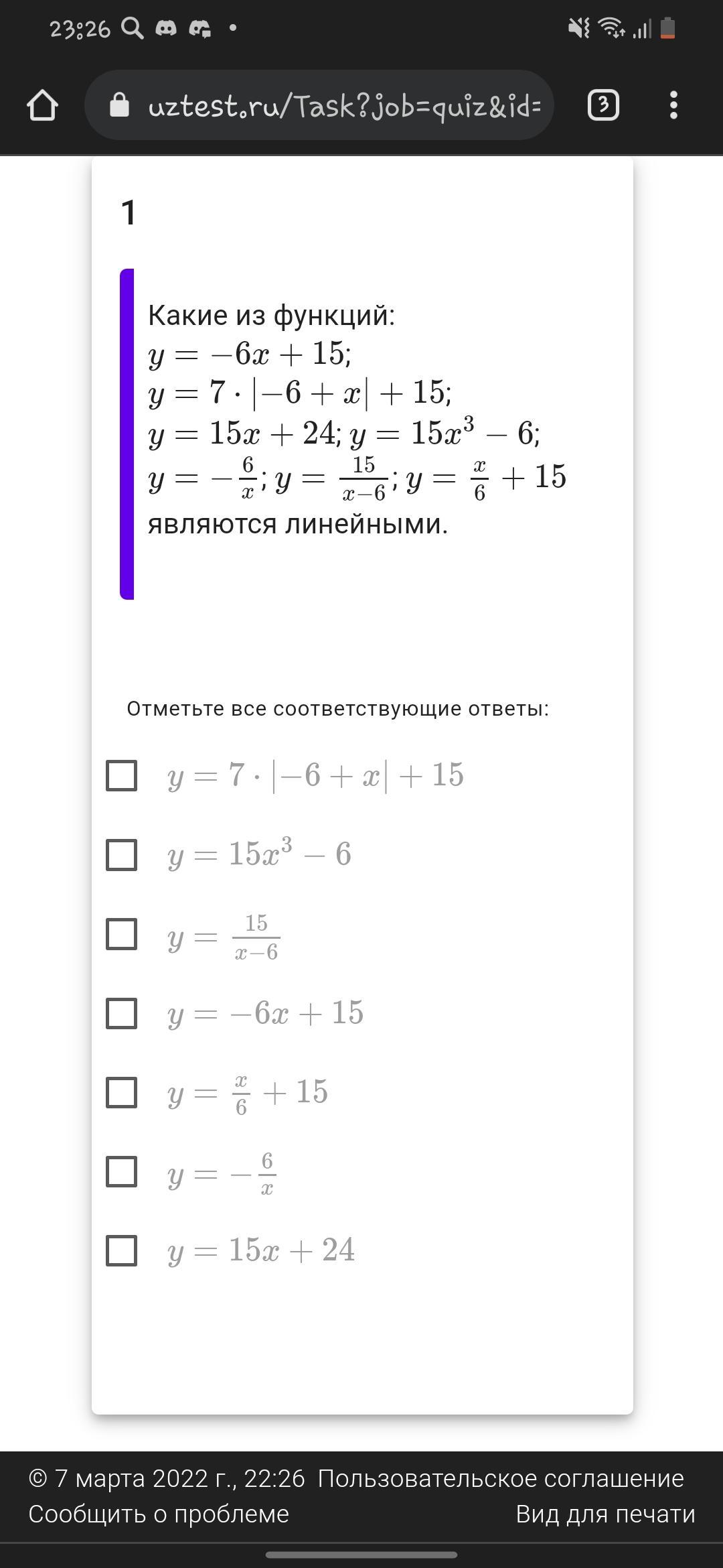 1 . Лінійні функції : y = - 6x + 15 ; y = 15x + 24 ; y = x/6 + 15 .