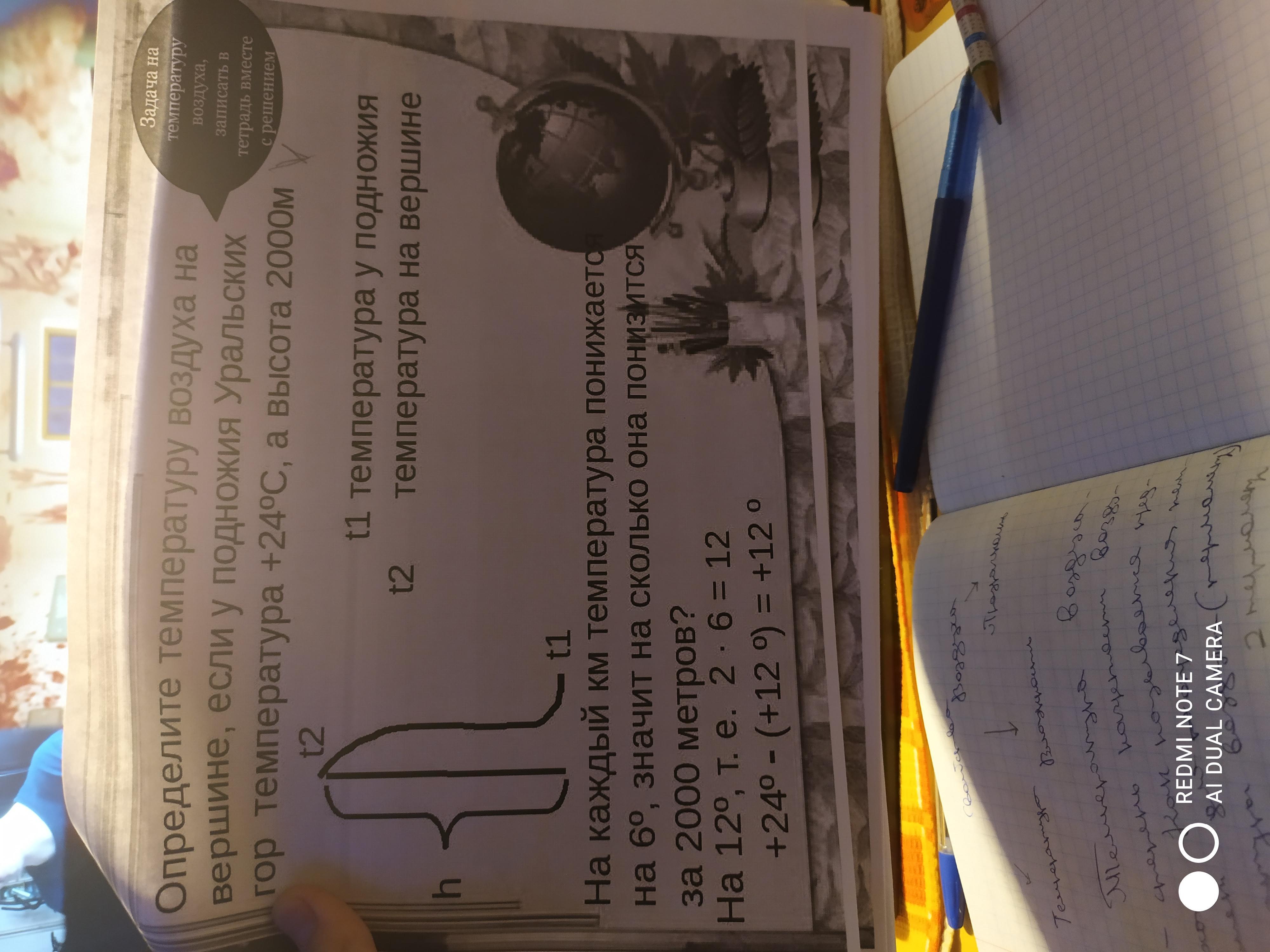 Каждый километр температура понижается на 6 градусов.
