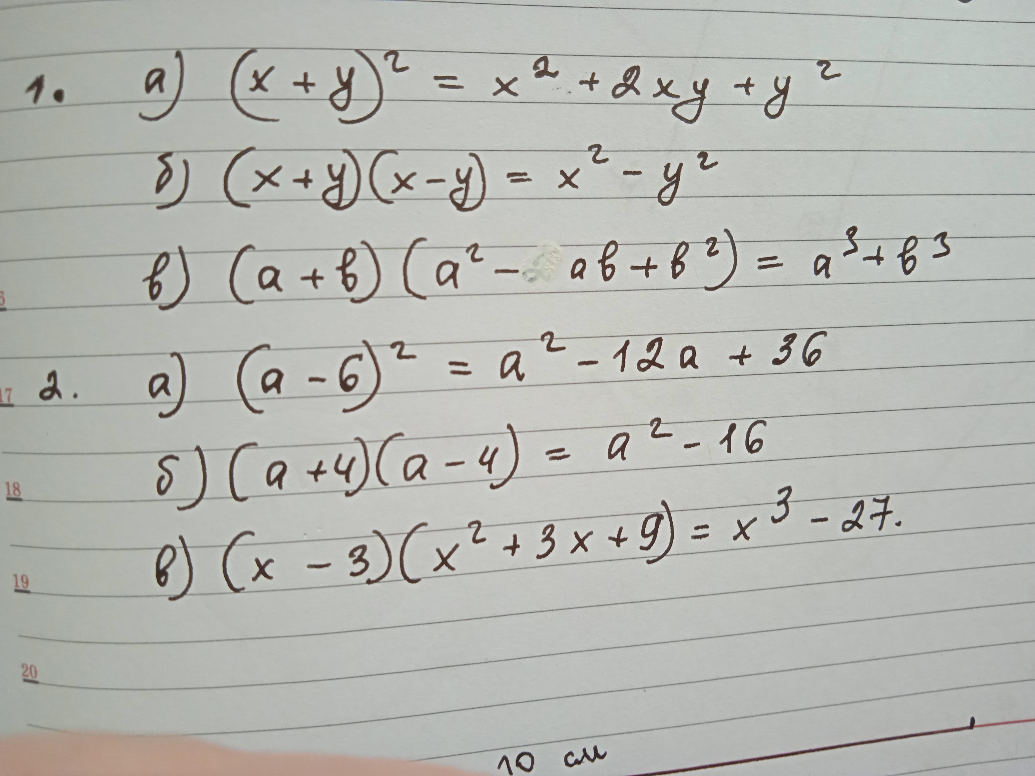 Применяем формулы квадрат суммы, разность квадратов , сумма кубов , квадрат разности , разность кубов .